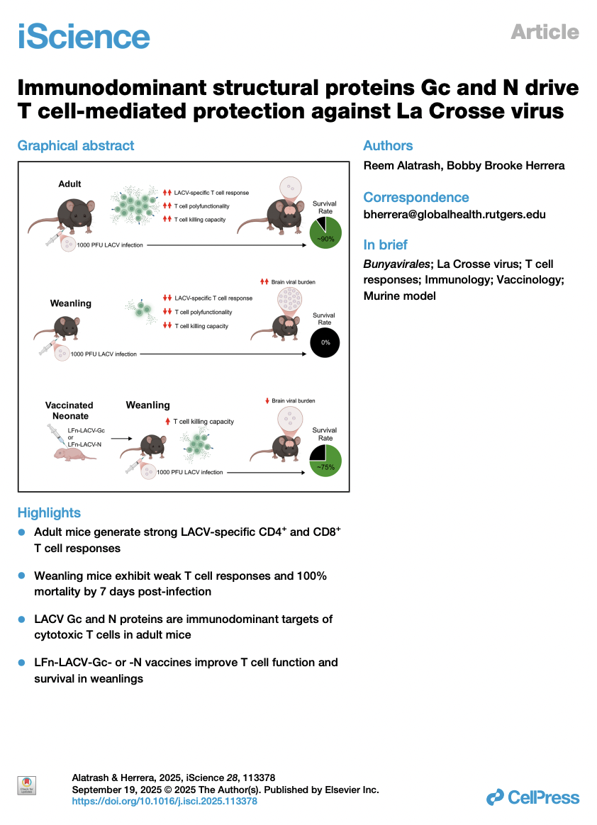 Alatrash R & Herrera BB. Immunodominant structural proteins Gc and N drive T cell-mediated protection against La Crosse virus. iScience. 2025.